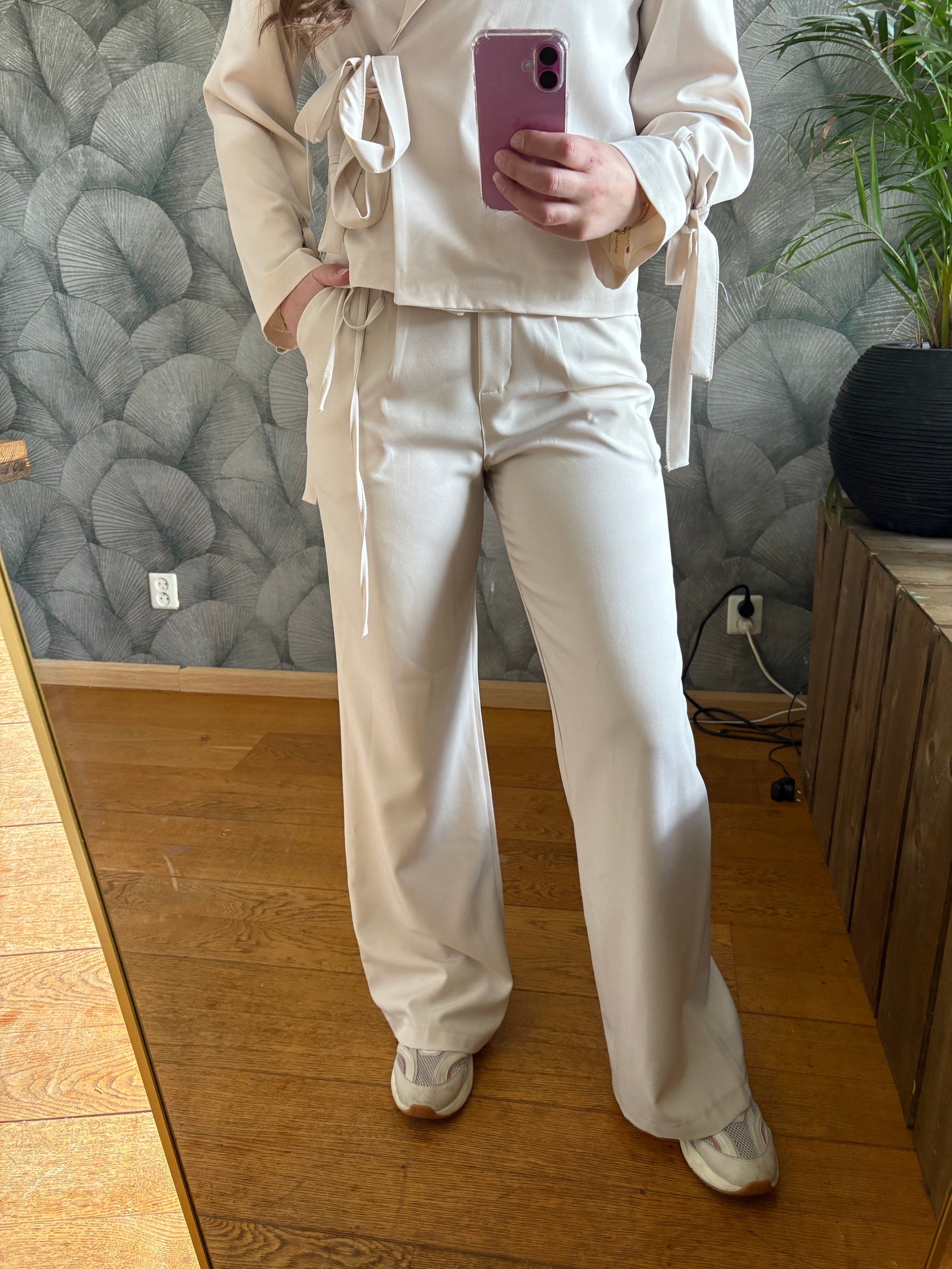 Broek in creme kleur. Ook verkrijgbaar in het zwart.