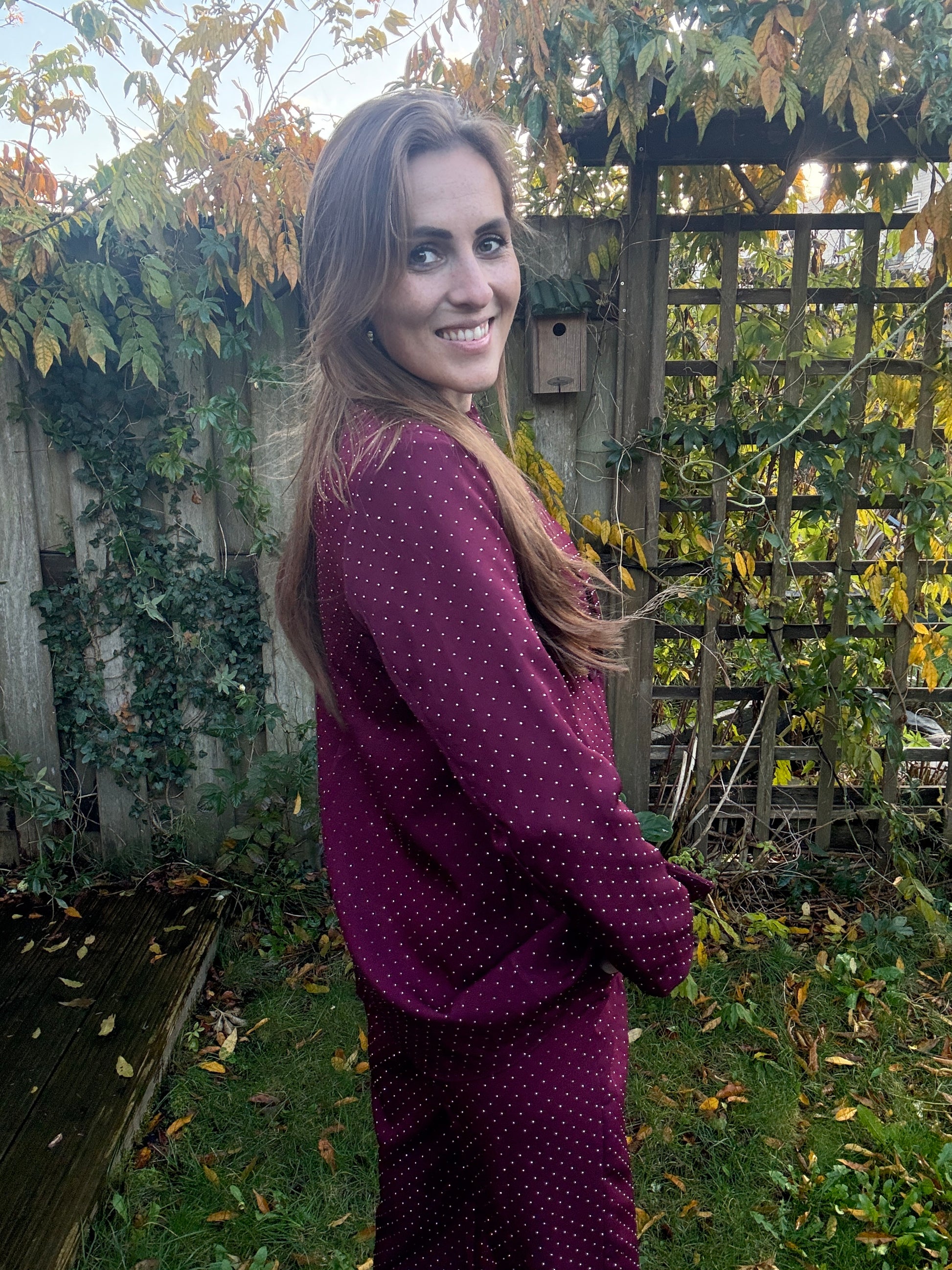 Combineer met de bijpassende broek voor een complete, glanzende look