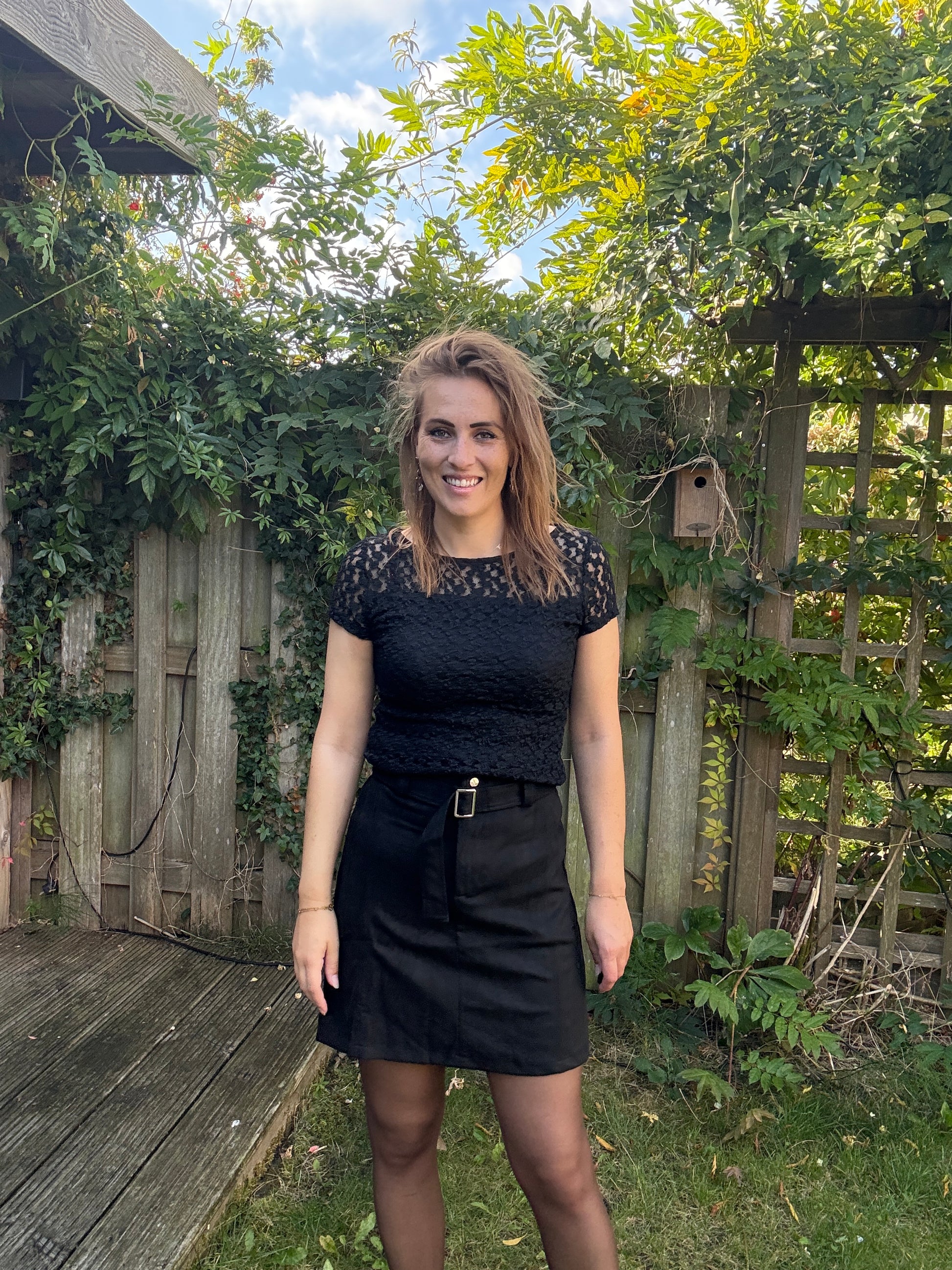 De top is one size. Te dragen van maat S tot een kleine maat L.
