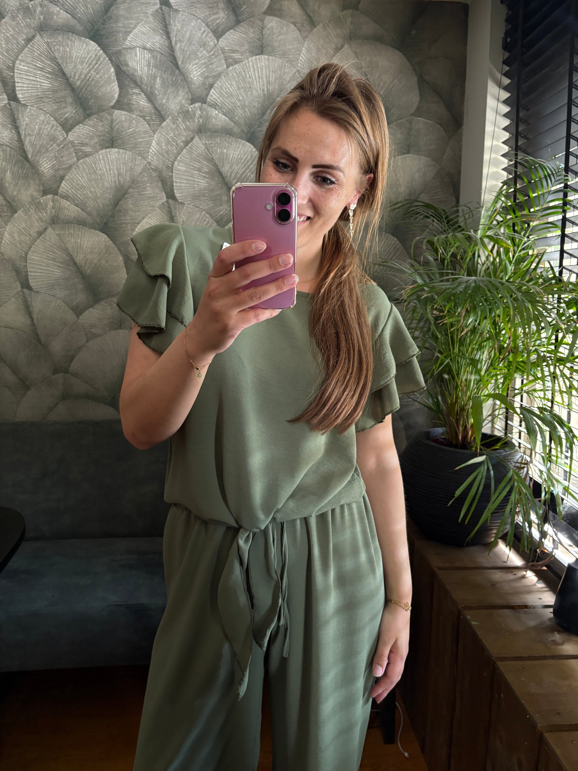 Bij de broek zit een elastische band, zodat deze lekker mee rekt en lekker zit. Wijdvallende mouwtjes.