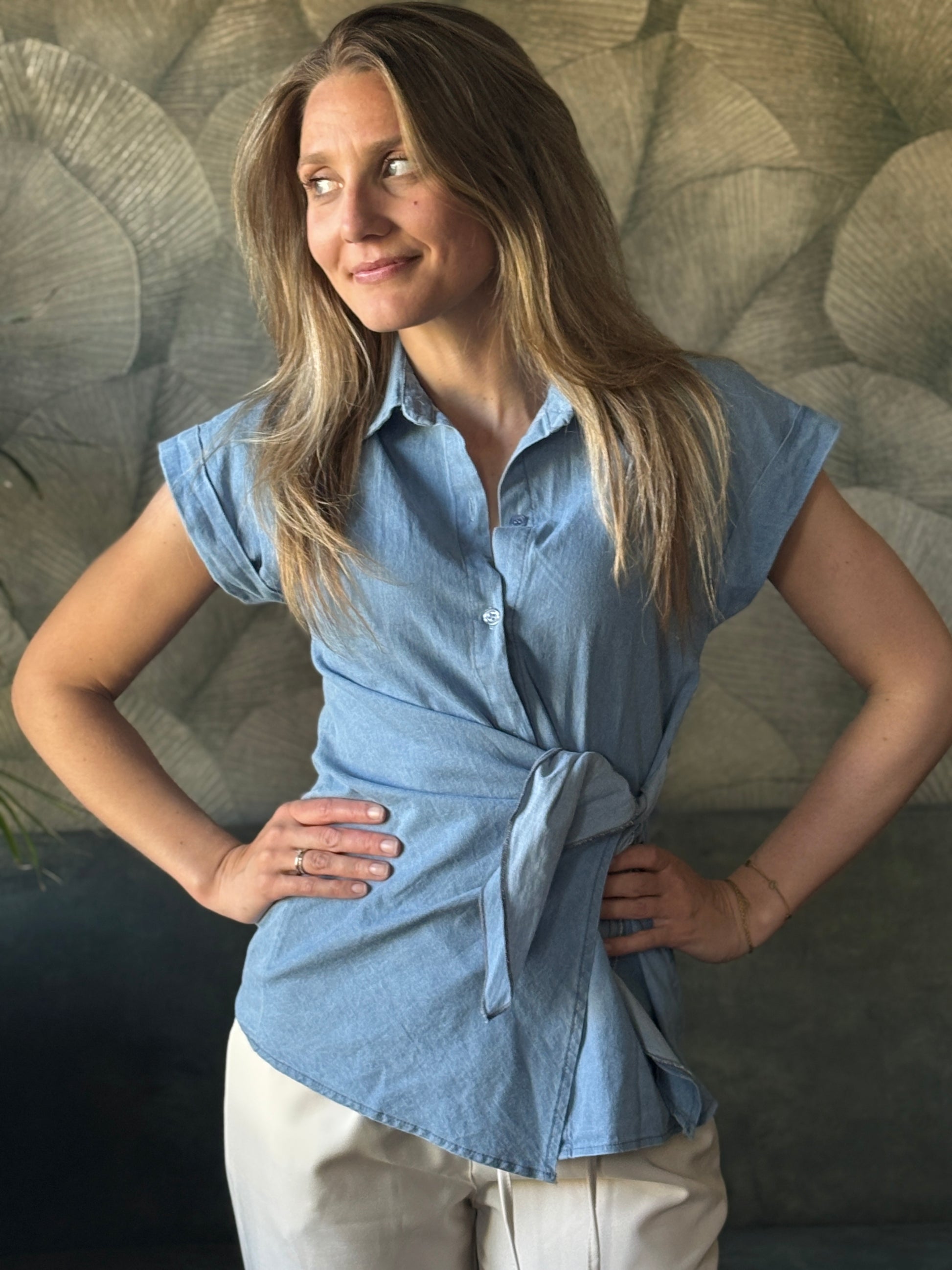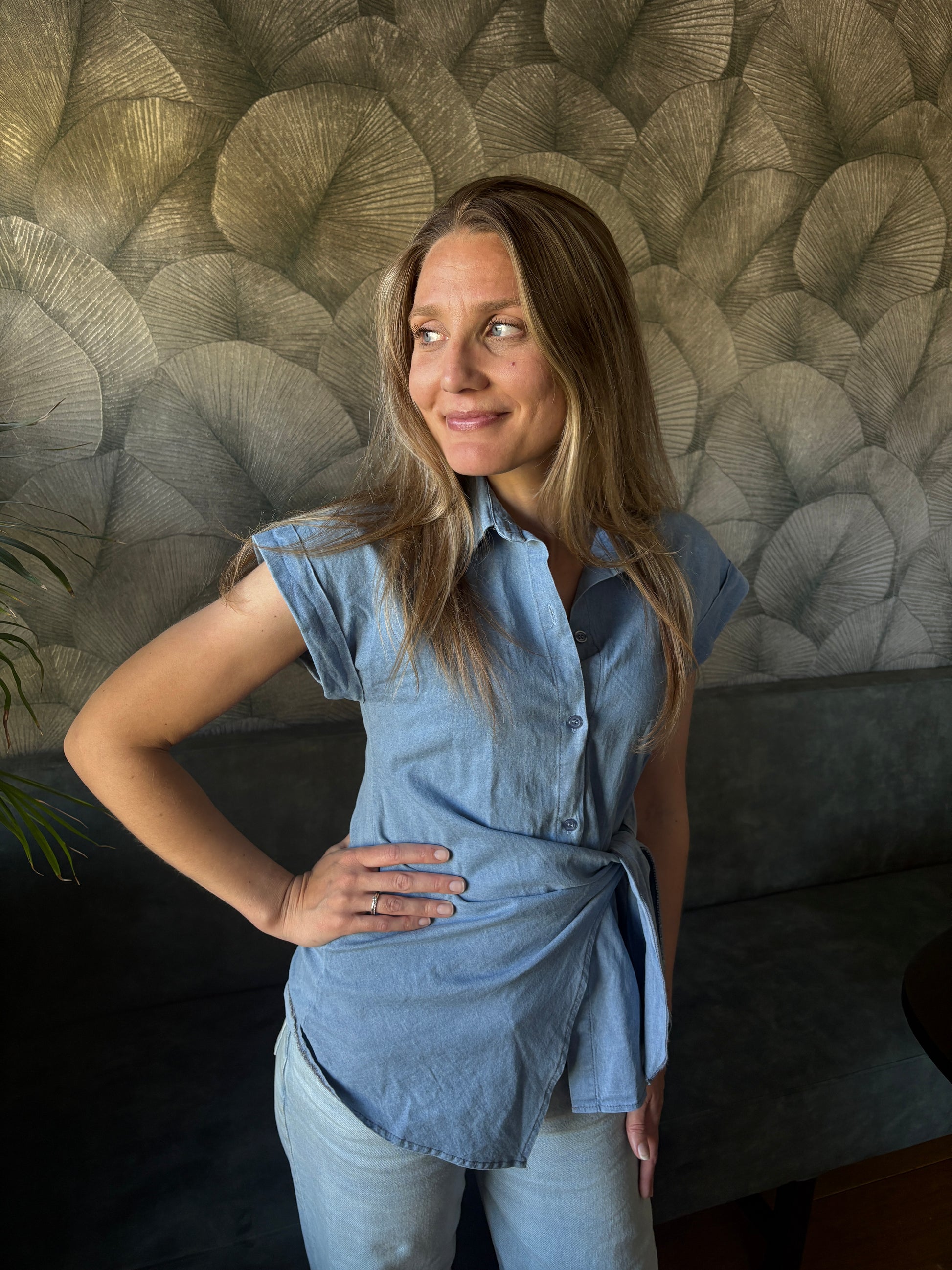 Heerlijk luchtige top van denim stof. Stretchy en comfortabel.