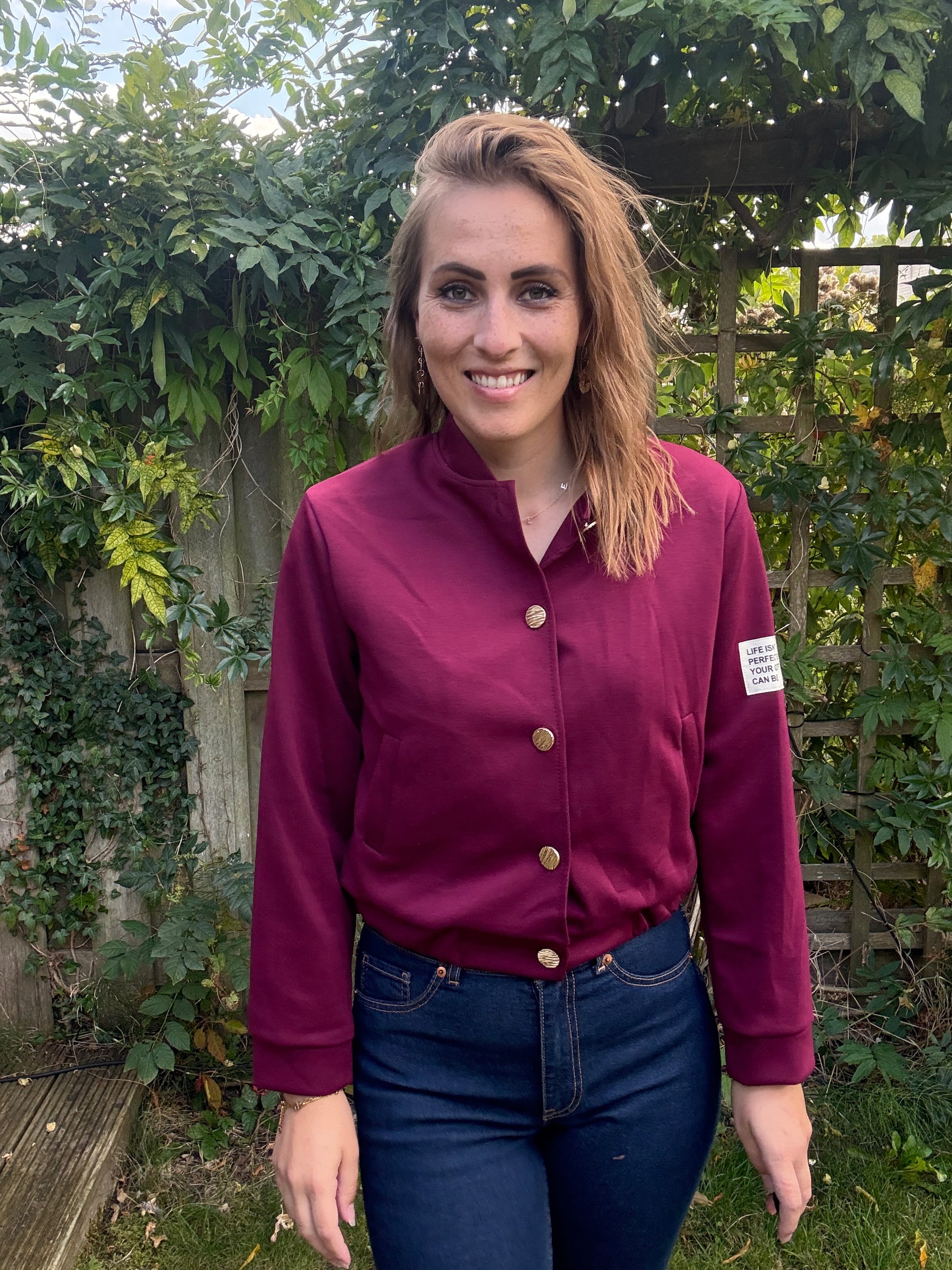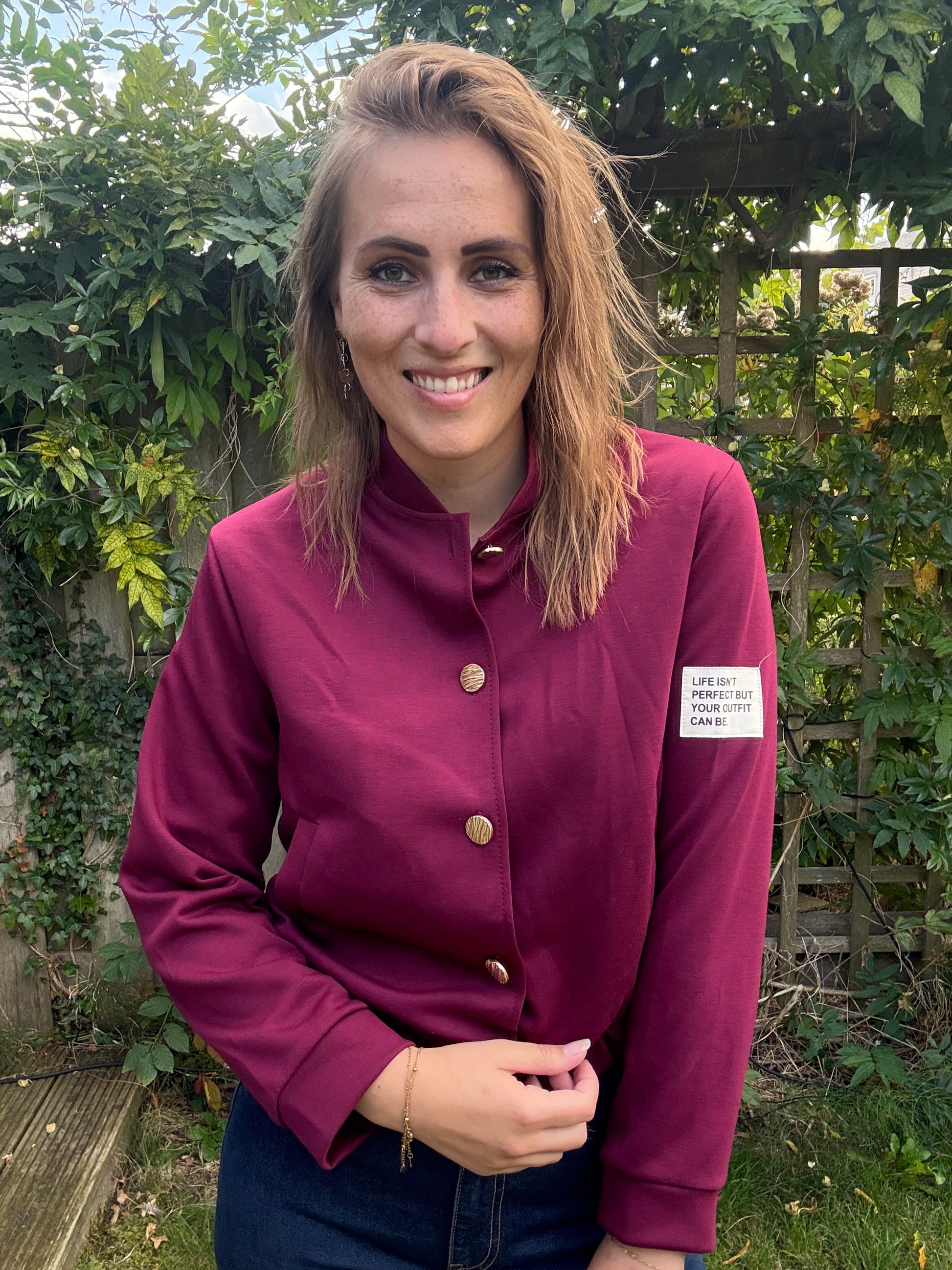 Heerlijk vest in een bordeaux rode kleur. Tijdens de herfst periode ook fijn om als jas te gebruiken.